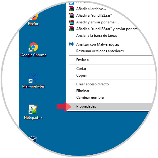 Ahora, daremos clic derecho sobre el nuevo acceso directo en el escritorio y allí seleccionamos la opción “Propiedades”: