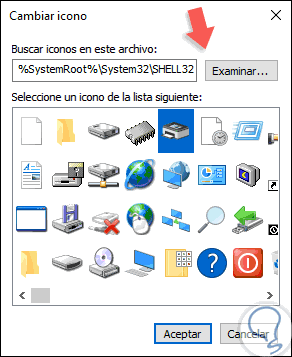 Pulsamos en el botón “Cambiar icono” y en el campo “Buscar iconos en este archivo” pegaremos la siguiente línea: