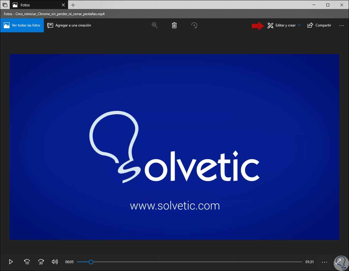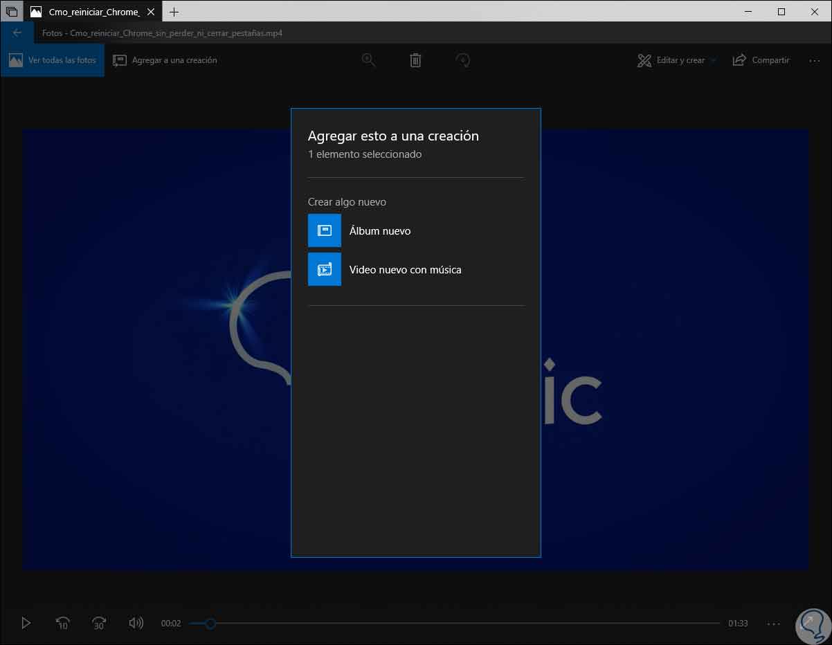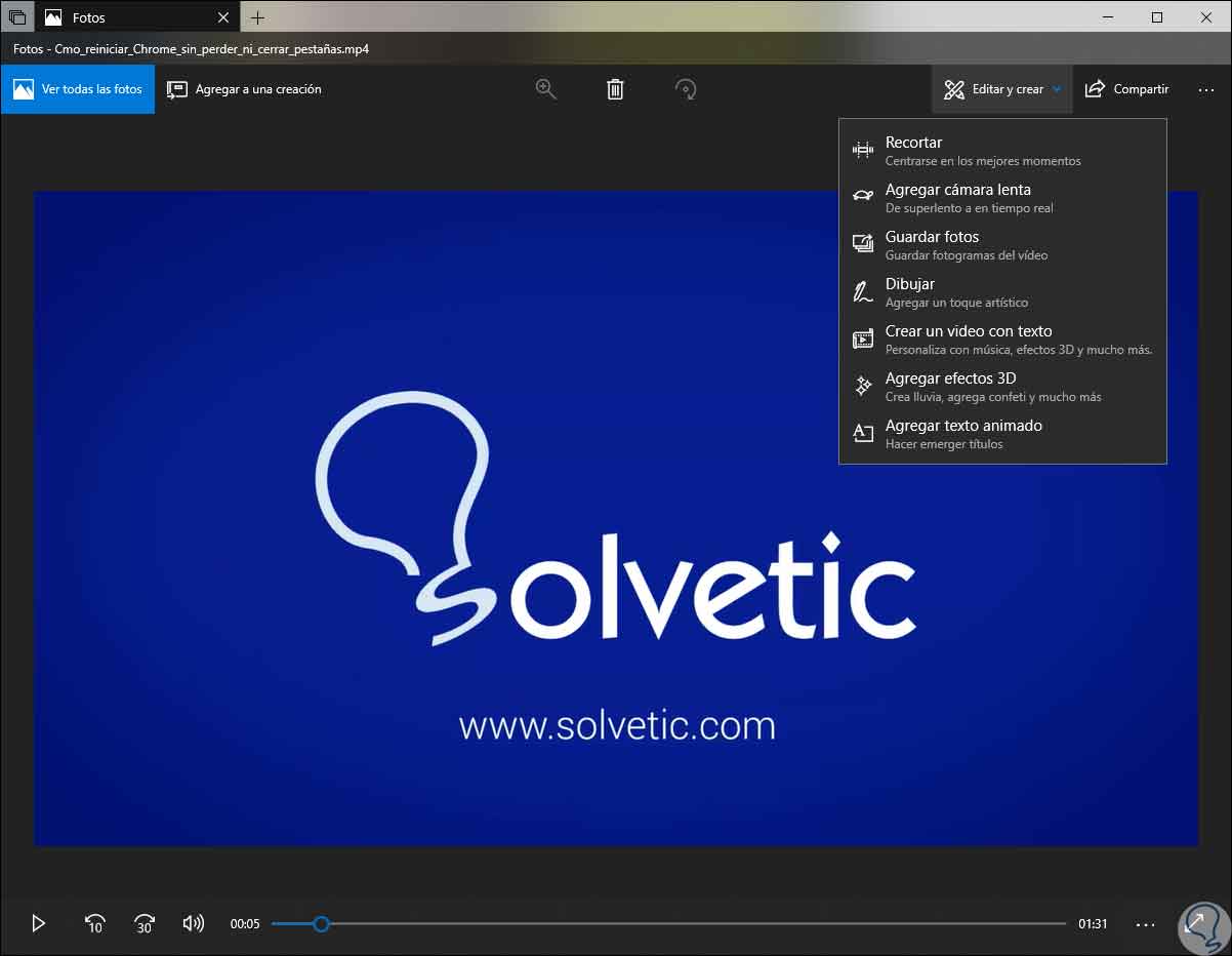 De forma automática el vídeo será abierto e iniciará su reproducción en la aplicación Fotos:
