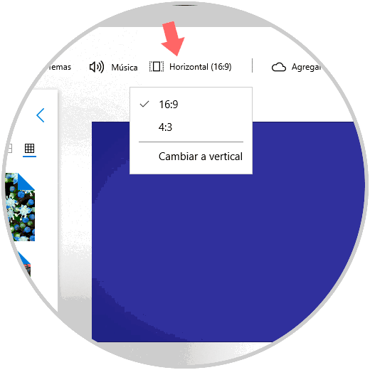 En la parte inferior podemos activar la casilla “Sincronizar el vídeo con el ritmo de la música” para crear una armonía entre ambos. También contamos con una opción de Relación de aspecto en la barra de herramientas la cual puede ser usada para cambiar entre diferentes orientaciones de vista y retrato para el vídeo seleccionado.