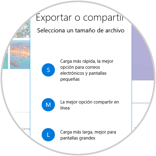 Al finalizar la creación de nuestro vídeo podemos dar clic en la opción “Exportar o Compartir” para exportar el proyecto de vídeo a un archivo donde tenemos la oportunidad de seleccionar la mejor opción para usar: