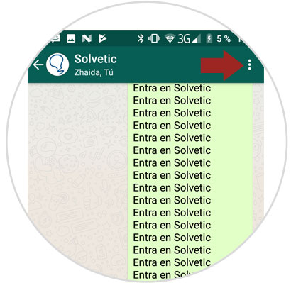 Dentro del chat, en la esquina superior derecha, verás un icono de tres puntos dispuestos verticalmente a través del cual accederás a los ajustes del chat. Pulsa aquí.