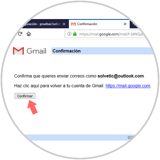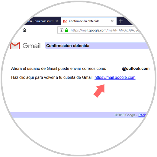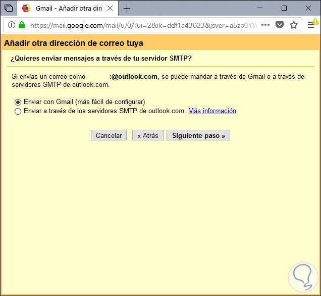 Pulsamos en el botón Paso siguiente y allí activamos la casilla Enviar con Gmail: