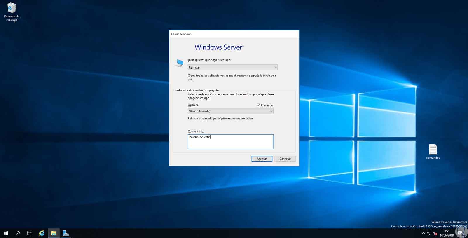 Actualmente, cuando apagamos Windows Server 2016 o 2019, debemos seleccionar alguna razón por la cual se llevará a cabo este proceso: