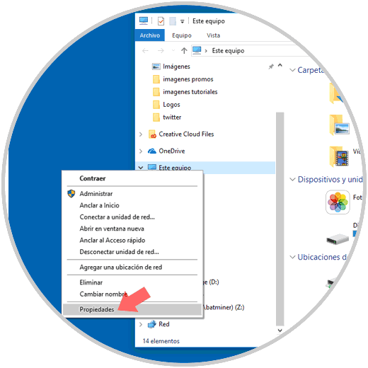 En la nueva ventana, pulsa sobre “Este equipo” con el botón derecho del ratón y se desplegará una ventana con nuevas opciones. Pulsa en “Propiedades”