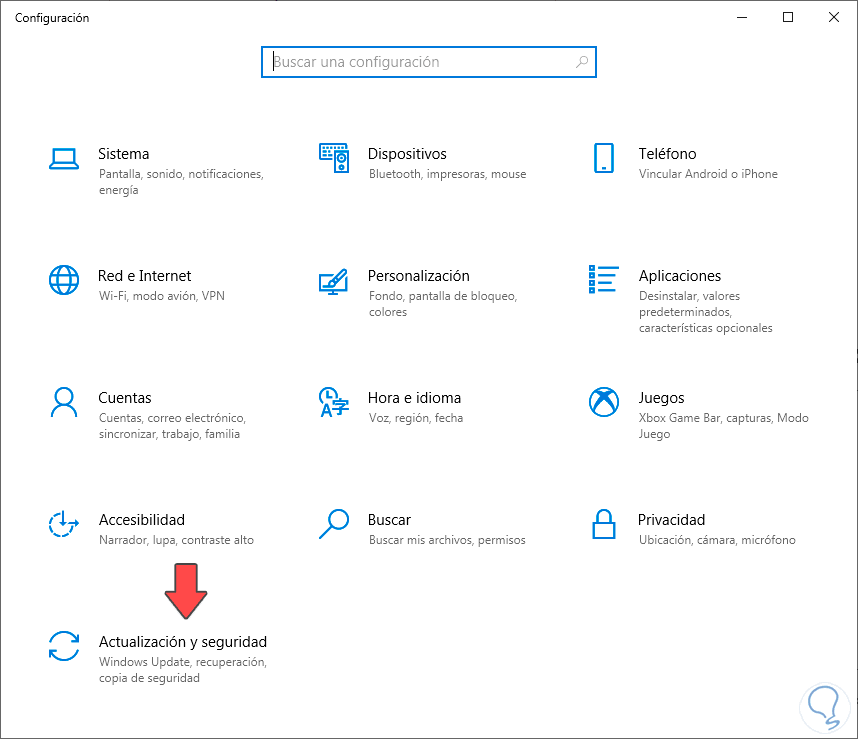 Iremos a "Inicio - Configuración". Después pulsaremos en "Actualizaciones y seguridad"