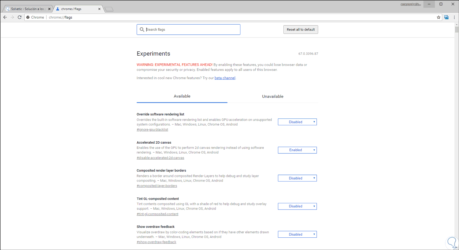 2. Deshabilitar Chrome flags para solución error pantalla negra