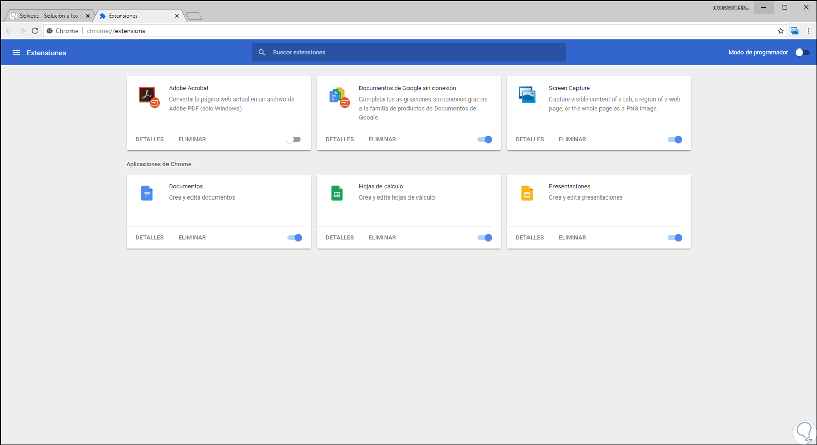 3. Deshabilitar los complementos en Chrome para solución error pantalla negra
