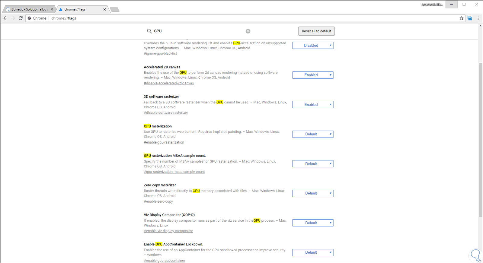 Una de las alternativas a usar consiste en desactivar algunos indicadores o flags de Google Chrome con el objetivo de corregir el error de la pantalla en negro.