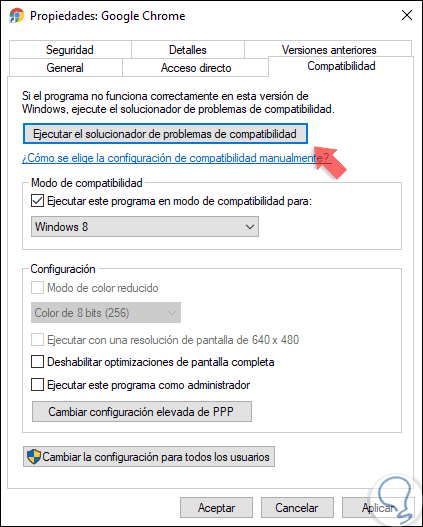 5. Ejecutar Google Chrome en modo de compatibilidad para solución error pantalla negra