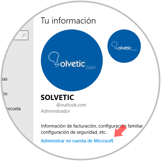 Allí damos clic en la línea “Administrar mi cuenta de Microsoft” y en la ventana desplegada será necesario iniciar sesión en caso de no estarlo ya: