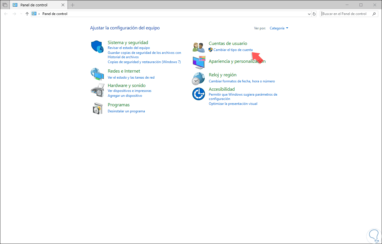 La siguiente alternativa a usar consiste en usar el Panel de control y para ello accederemos a este y veremos lo siguiente: