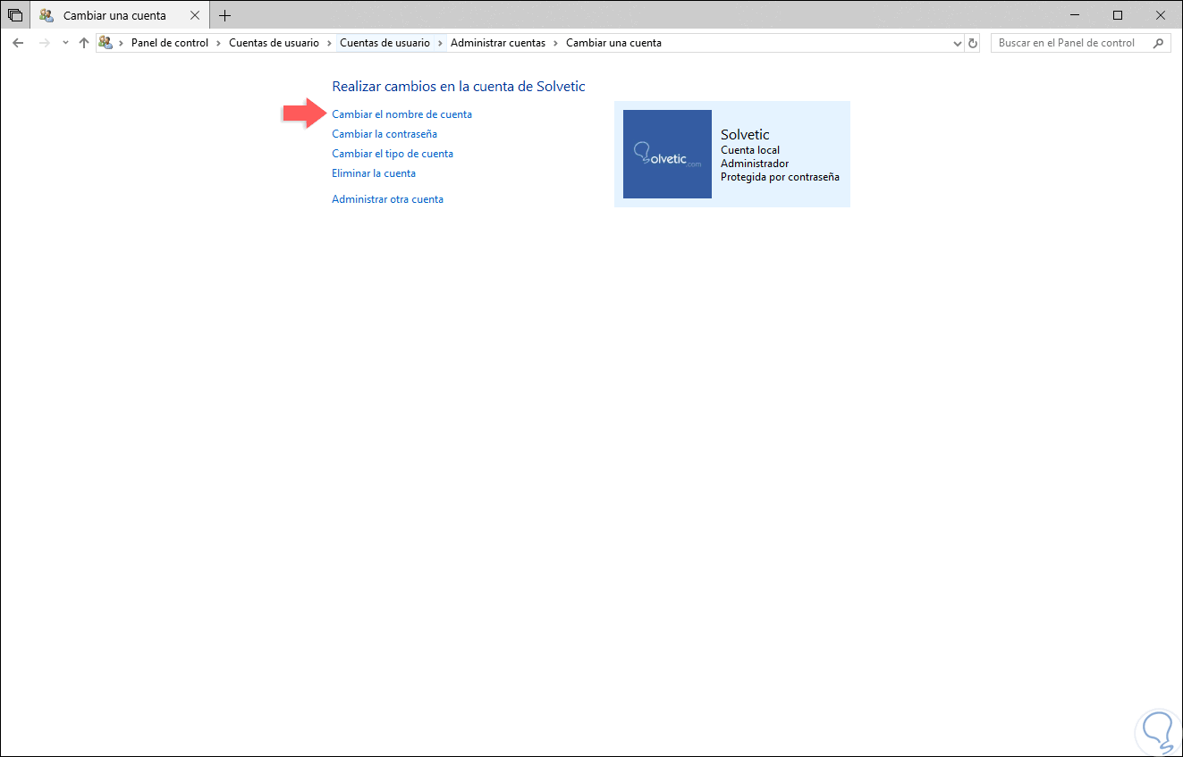 Ahora, en la nueva ventana, daremos clic en la línea “Cambiar el nombre de la cuenta”: