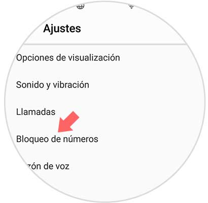 Veremos que dentro de los ajustes hay varias opciones. Seleccionamos “Bloqueo de números”.