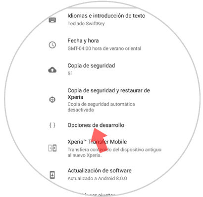 Dentro de “Sistema” encontrarás la opción “Opciones de desarrollo” Pulsa aquí.