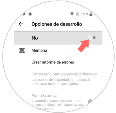 Una vez dentro, desactiva la pestaña de la parte superior y habrás desactivado el modo desarrollador en el dispositivo.