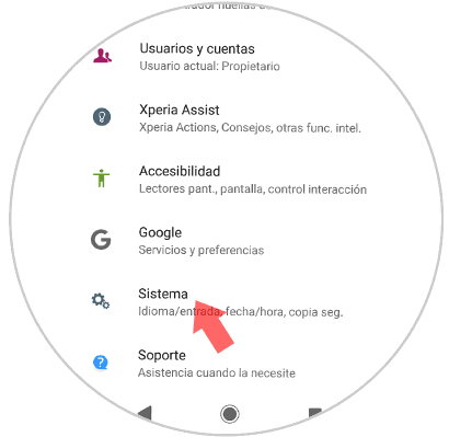 Una vez dentro verás todas las opciones de configuración en tu móvil Sony. Desliza la pantalla hasta la opción “Sistema” y una vez en sistema pulsa aquí.
