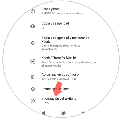Dentro de Sistema, si deslizas hacia la parte de abajo del todo en la pantalla encontrarás una opción llamada “Información del teléfono” Pulsa esta opción para continuar.