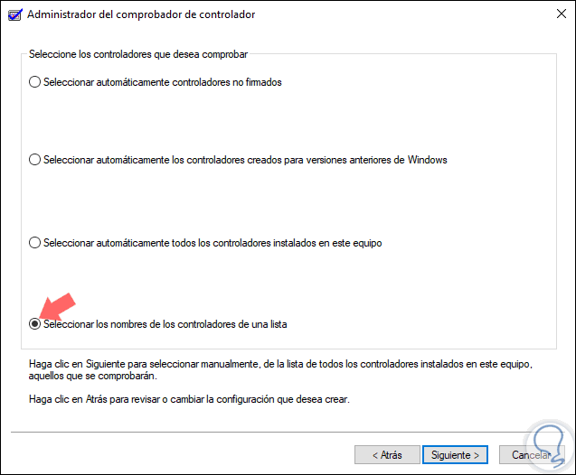 En la próxima ventana activamos la casilla "Seleccionar los nombres de los controladores de una lista". Pulsa "Siguiente"