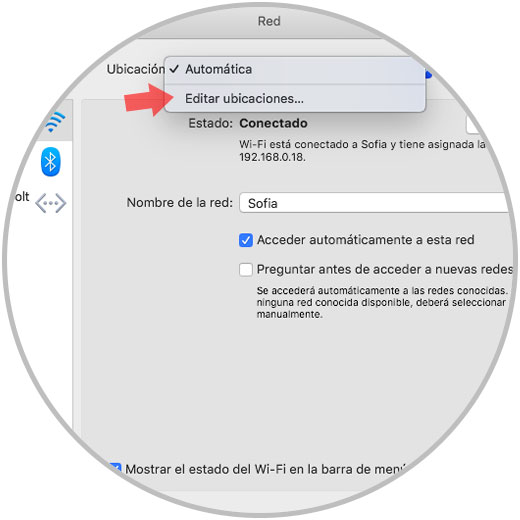 En la nueva ventana vamos a la sección "Wi-Fi" y desplegamos el campo "Ubicación" para seleccionar la opción "Editar ubicaciones":