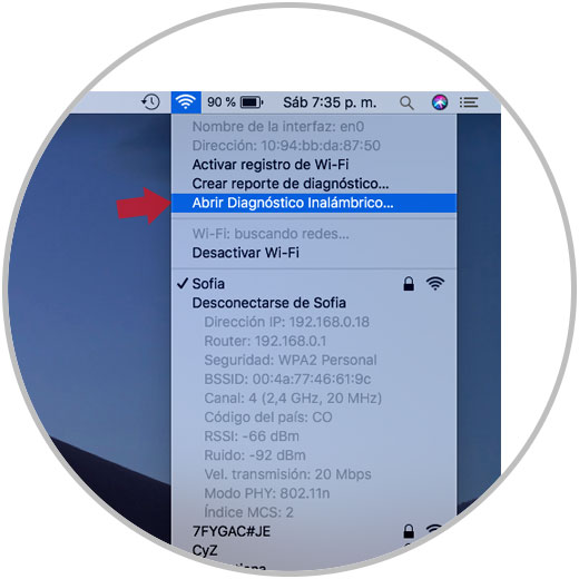 2. Realizar un diagnóstico de la red Wi-Fi en macOS Mojave para solucionar error