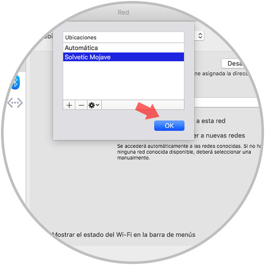 En la ventana emergente pulsamos sobre el ícono " + " y agregamos el nombre de la ubicación que usaremos en macOS Mojave. Pulsamos en el botón "OK" para aplicar los cambios.