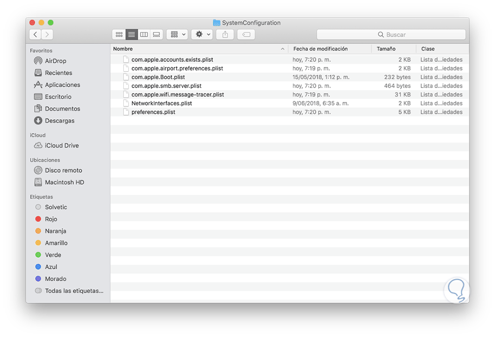 Esto es realmente es útil y práctico, pero uno de los errores consisten en que macOS Mojave puede alojar diferentes redes preferidas en el sistema y esto finalmente conlleva a un conflicto interno puesto que macOS Mojave intentara establecer el proceso de conectividad con una red que no existe ya, su nombre ha sido modificado o está fuera de rango. Para corregir esto, será necesario eliminar del sistema determinados archivos de configuración asociados a las redes W-Fi preferidas, y así crear un nuevo archivo de nuevas redes preferidas. En este caso Solvetic aconseja crear una copia de seguridad del sistema en caso de que algún error surja durante el proceso.