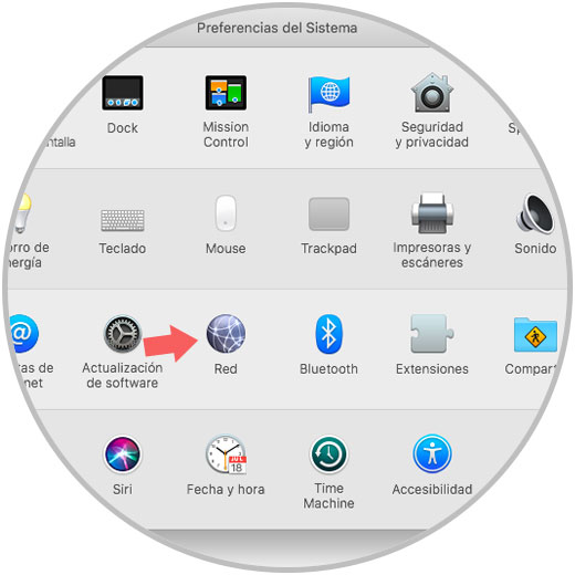 Para configurar estos elementos vamos a "Preferencias del sistema" donde veremos lo siguiente. Allí damos clic en la sección "Red"