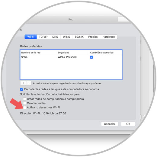Esta opción funciona más como una medida de seguridad mediante la cual se habilita que el macOS Mojave este en contacto con el router y de este modo siempre solicitar la contraseña de administrador al intentar conectarnos o desconectarnos de alguna red Wi-Fi.