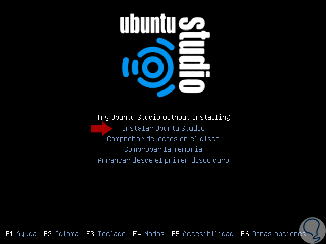 Seleccionamos la línea “Instalar Ubuntu Studio” y veremos lo siguiente: