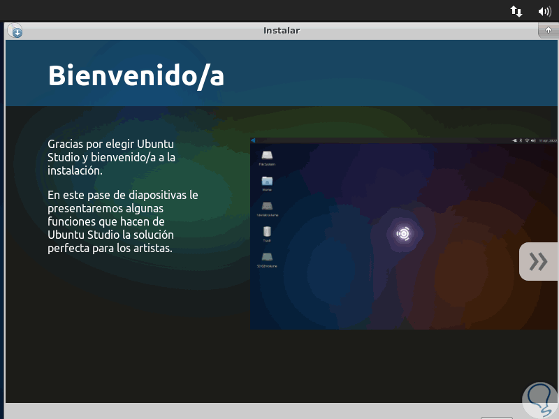 Allí podremos ver una serie de diapositivas donde se despliegan las aplicaciones de Ubuntu Studio: