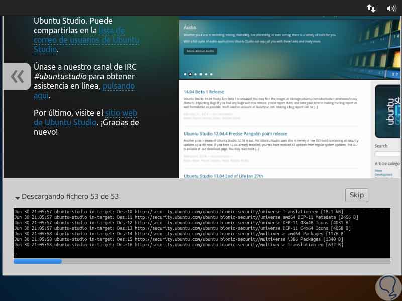 En la parte inferior veremos el estado de la instalación de Ubuntu Studio: