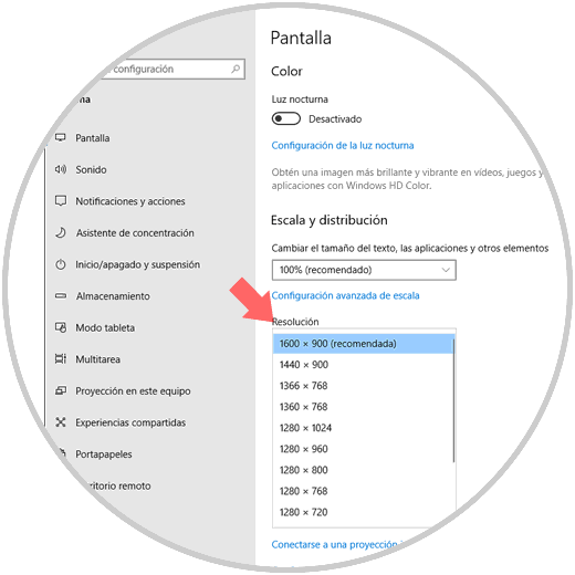 4. Cambiar la resolución de la pantalla de Windows 10 y solucionar ventana fuera de pantalla