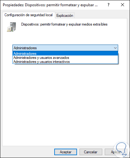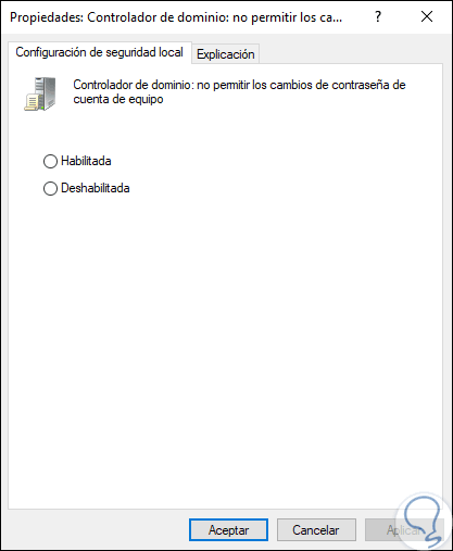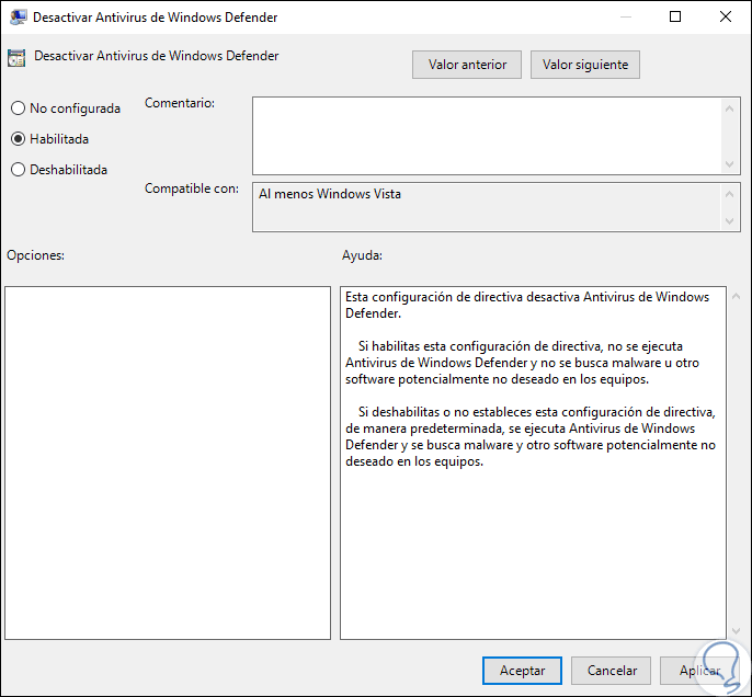 Se desplegará una ventana emergente donde podremos habilitar o no dicha política: