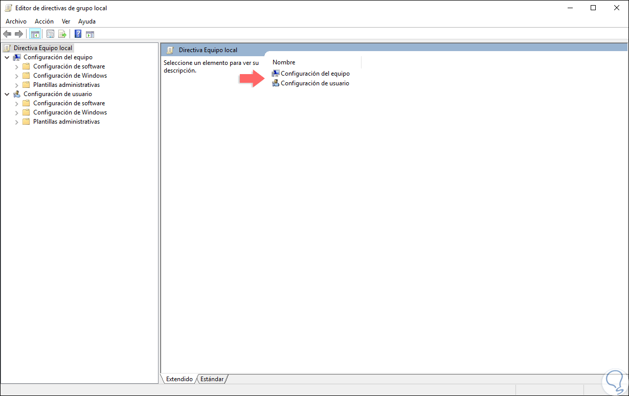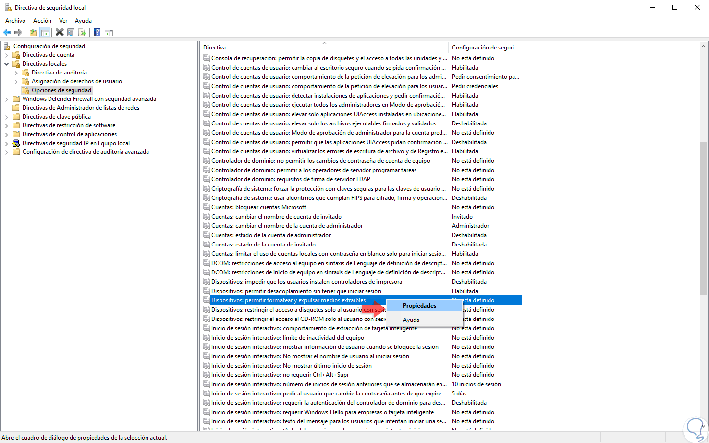 Allí debemos leer detenidamente cada una de las directivas desplegadas y para acceder a sus propiedades contamos con dos opciones: