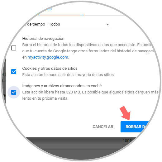 6. Borrar caché y cookies de Google Chrome para solucionar error PDF en Chrome