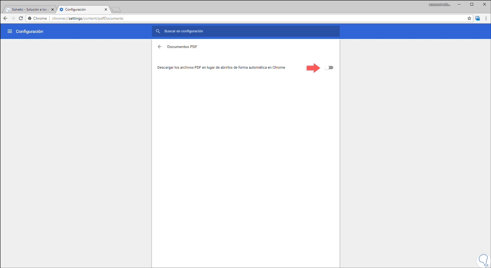 Ahora, debemos desactivar la opción “Descargar los archivos PDF en lugar de abrirlos de forma automática en Chrome”: