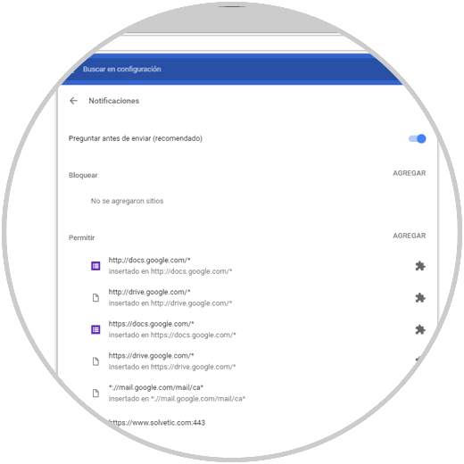 Esta opción se aplica para sitios que han sido bloqueados y deseamos permitir las notificaciones o viceversa, pero su proceso es simple.