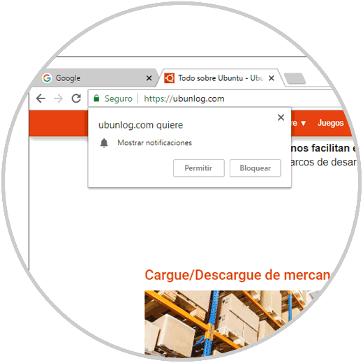 Cuando accedemos a algún sitio web que genera notificaciones, será desplegada una ventana emergente en la parte superior donde podremos permitir o no dichas notificaciones.