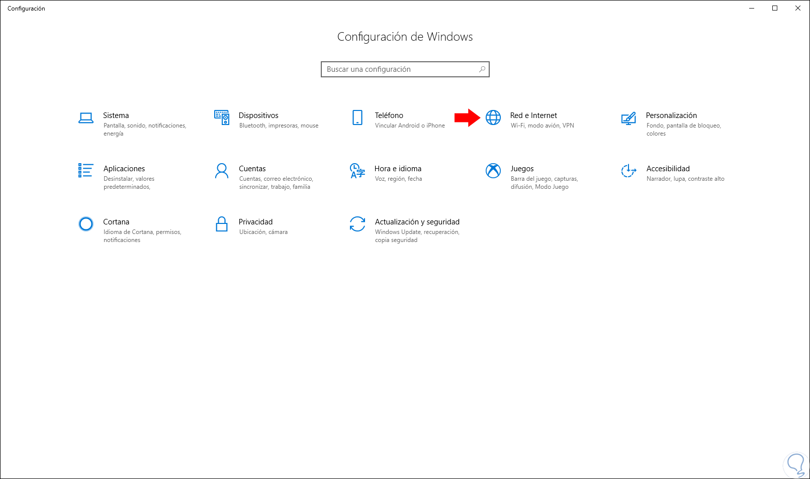 En primer lugar, vamos al menú Inicio / Configuración donde veremos lo siguiente: