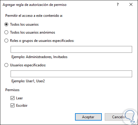 En la parte inferior definimos qué tipo de permisos serán concedidos. Pulsamos en Aceptar para aplicar los cambios.