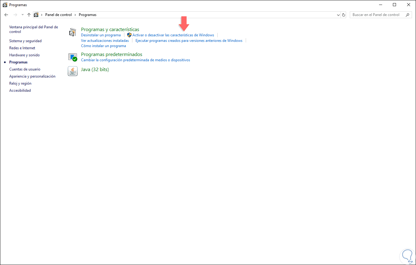 Windows 10 incluye compatibilidad para la configuración de un servidor FTP, pero será necesario agregar los componentes necesarios de forma manual, para ello accedemos al Panel de control y allí vamos a la sección “Programas” donde veremos lo siguiente: