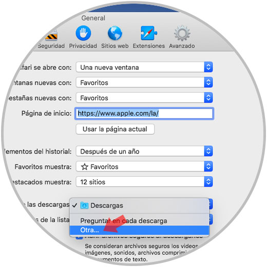 Así de simple podemos definir la ruta donde serán alojadas todas las descargas de Safari.