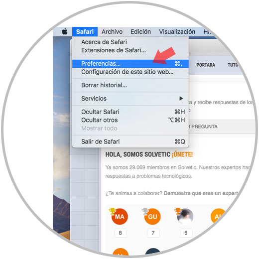 En primer lugar, debemos acceder al Safari en macOS Mojave y allí ir al menú "Safari" y seleccionar la opción "Preferencias":