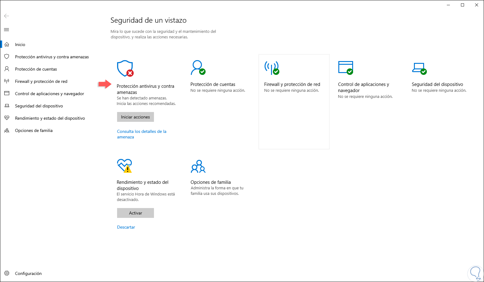 - Rendimiento y estado del dispositivo: Gracias a esta sección podemos tener acceso a información del estado del rendimiento del dispositivo y mantenerlo actualizado con las versiones más reciente de Windows 10.