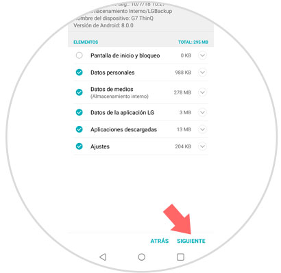 Selecciona la información que quieres que se restaure y pulsa en “Siguiente”