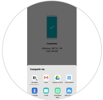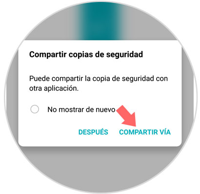 Cuando haya finalizado saltará una ventana emergente en la pantalla donde tendrás la opción de compartir esta copia pulsando sobre “Compartir vía”