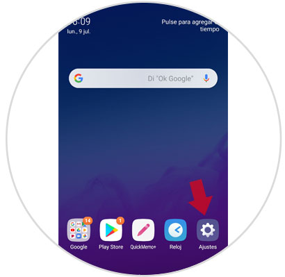 Accede a los “Ajustes” del dispositivo marcando sobre el icono de la rueda dentada en el menú principal.