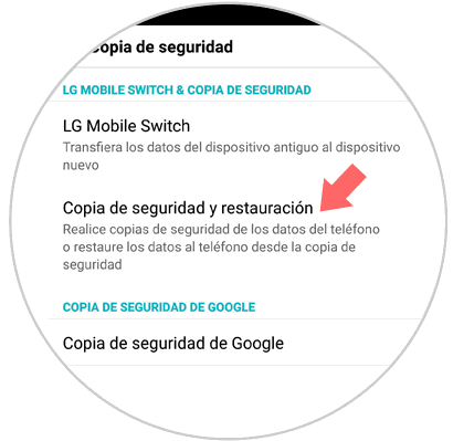 Una vez aquí, en la nueva pantalla, pulsa sobre la opción “Copia de seguridad y restauración” ubicada en el segundo lugar.