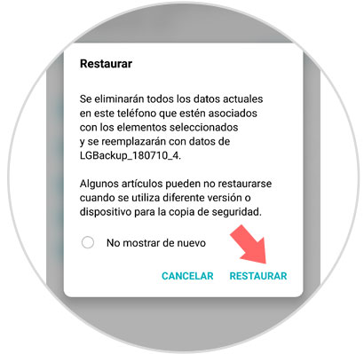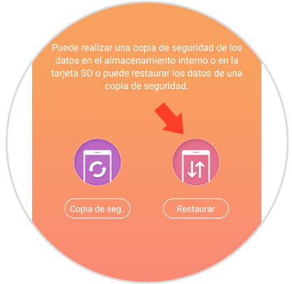Ahora, en la nueva pantalla, pulsa sobre el icono rosa para comenzar el proceso de “Restaurar”